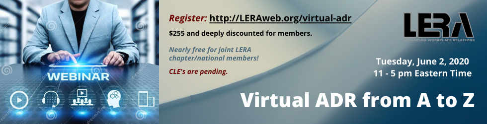 Note: This webinar will explore some of the benefits and challenges of conducting mediation, arbitration, and collective bargaining through video conferencing. Speakers will share their experiences in developing and carrying out virtual dispute resolution programs at state and federal government levels and in private practice.